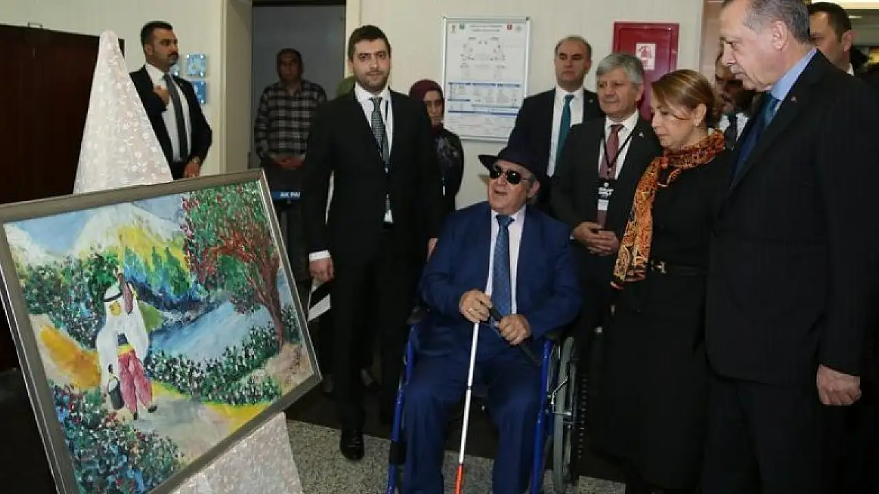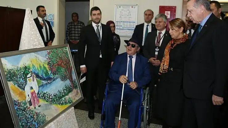 Cumhurbaşkanı ve AK Parti Genel Başkanı Recep Tayyip Erdoğan, "Engelleri Aşanlar 2017" programı kapsamında, doğuştan görme engelli ressam Eşref Armağan'ın yağlı boya resimlerinden oluşan sergiyi gezdi.