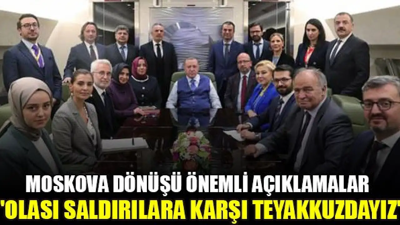 Türkiye Cumhurbaşkanı Recep Tayyip Erdoğan, Rusya'daki temaslarının ardından yurda dönüşünde uçakta gazetecilerin gündeme ilişkin sorularını yanıtladı, değerlendirmelerde bulundu. Moskova ziyaretinde Rusya Devlet Başkanı Vladimir Putin ile ikili ilişkileri ele aldıklarını belirten Erdoğan, özellikle Suriye'de İdlib bölgesindeki gelişmelerin gündemlerinin öncelikli maddesini teşkil ettiğini söyledi. Ayrıca Libya'yı da görüşme imkanı bulduklarını bildiren Erdoğan, "Rusya Federasyonu ile ekonomi, ticaret, sanayi, turizm, enerji alanlarında kapsamlı ve çok boyutlu ilişkilerimiz var. Bugün bu konuları ele alma imkanımızın yanında, bu yıl ülkemizde yapacağımız Yüksek Düzeyli Stratejik Konsey Toplantısı için Sayın Putin'i ülkemize davet ettik." dedi.