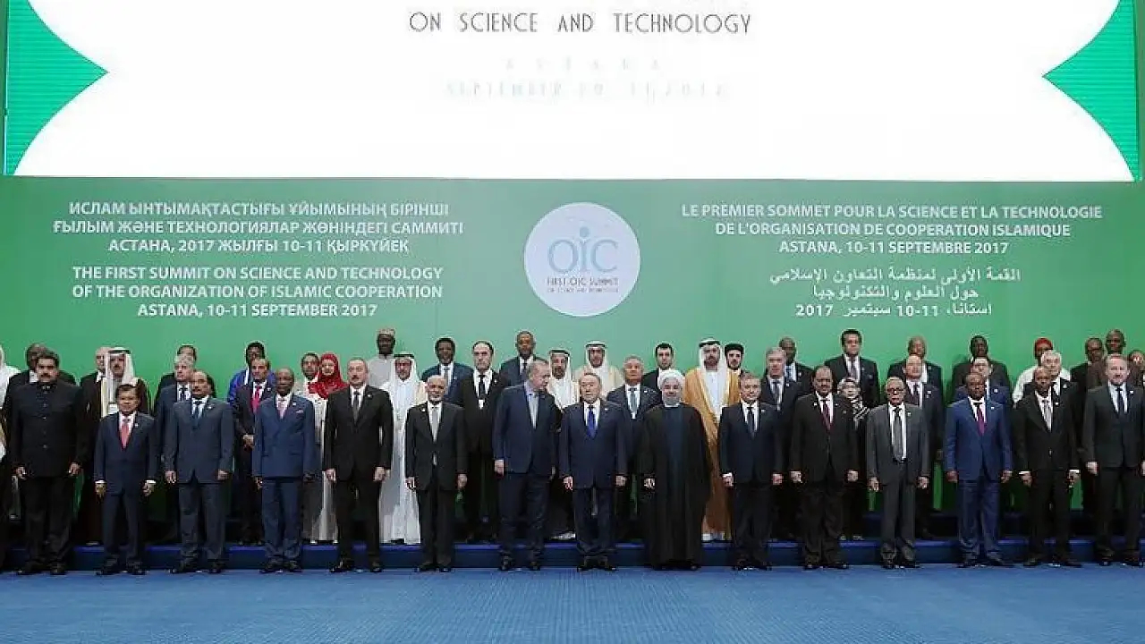 Cumhurbaşkanı Recep Tayyip Erdoğan, İslam İşbirliği Teşkilatı 1. Bilim ve Teknoloji Zirvesi'ndeki aile fotoğrafı çekimine katıldı.