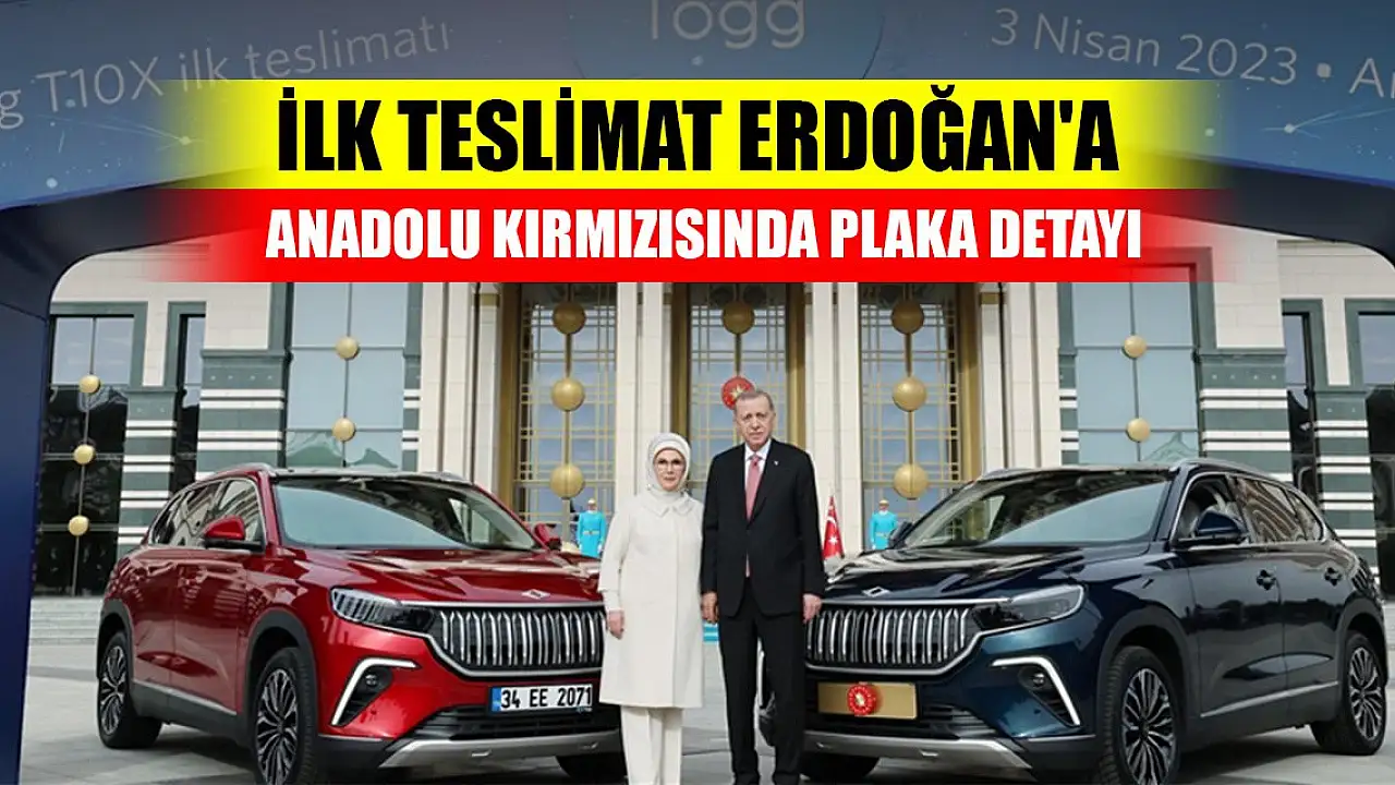 Cumhurbaşkanı Recep Tayyip Erdoğan, Cumhurbaşkanlığı Külliyesi'nde İlk Togg T10X Teslimatı Programı'na katıldı. Cumhurbaşkanı Erdoğan, Cumhurbaşkanlığı Külliyesi'nde İlk Togg T10X Teslimatı Programı'nda, 'İnşallah bugünden itibaren Togg'u yollarda görmeye başlıyoruz.' dedi. Erdoğan ve eşi Emine Erdoğan'a törenle takdim edilen akıllı cihaz, 'Anadolu' renginde oldu. Aracın plakası ise dikkat çekti.