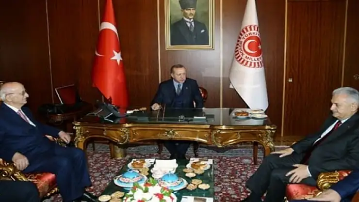 Cumhurbaşkanı Erdoğan, partisinin TBMM Grup Toplantısı'nın ardından Meclis Başkanı İsmail Kahraman ve Başbakan Binali Yıldırım ile bir araya geldi.