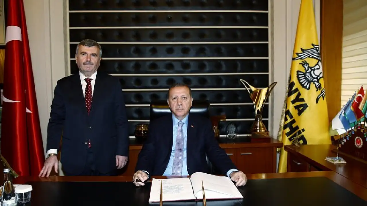 Cumhurbaşkanı Recep Tayyip Erdoğan, Kılıçarslan Şehir Meydanı'ndaki toplu açılış töreninin ardından Konya Büyükşehir Belediye Başkanı Tahir Akyürek'i ziyaret etti.