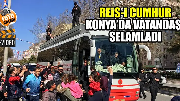31 Mart seçimleri öncesi miting için Konya'ya gelen Cumhurbaşkanı Recep Tayyip Erdoğan, havaalanından mitingin yapılacağı Kılıçarslan Şehir Meydanı'na giderken yol kenarında bekleyen vatandaşları selamladı.
