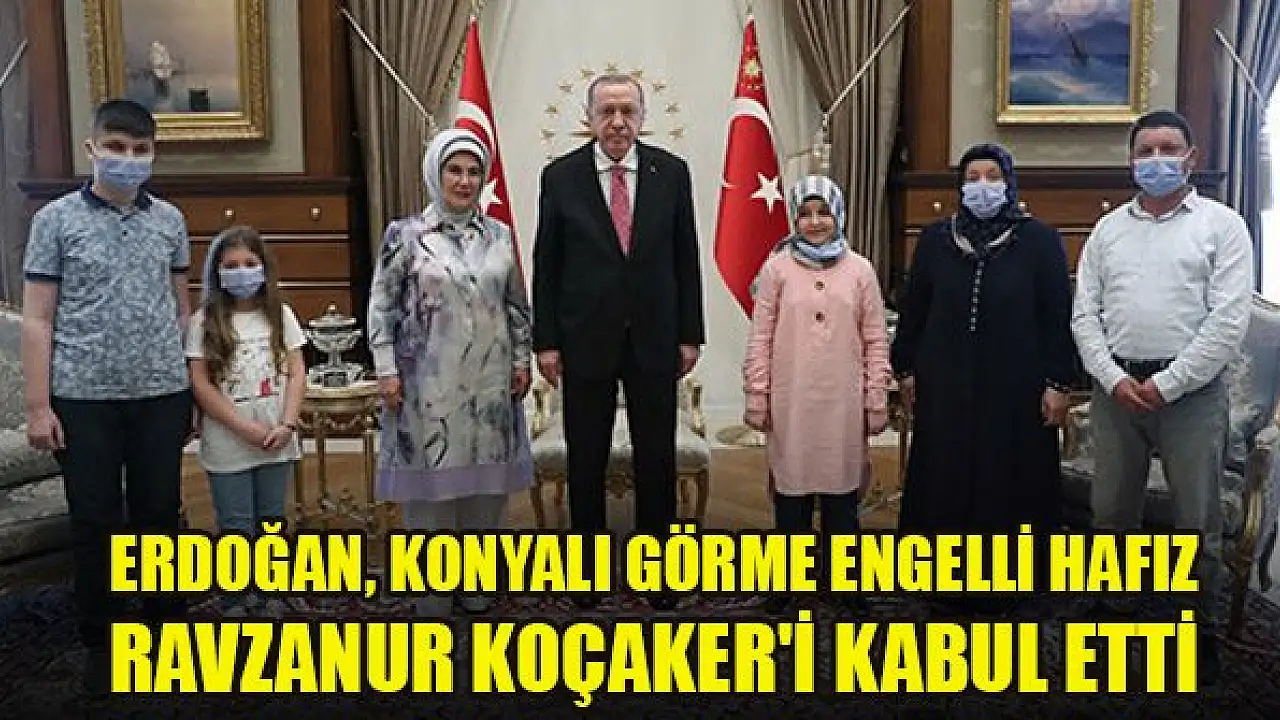 Türkiye Cumhurbaşkanı Recep Tayyip Erdoğan ve eşi Emine Erdoğan, Cumhurbaşkanlığı Külliyesi'nde, Konya'da yaşayan görme engelli imam hatip ortaokulu 6'ncı sınıf öğrencisi Ravzanur Koçaker ve ailesini kabul etti.
