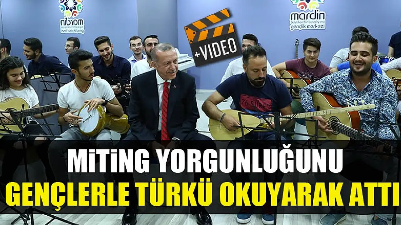Seçim çalışmaları için Mardin'de bulunan Cumhurbaşkanı Erdoğan mitingin ardından gençlik merkezini ziyaret etti. Erdoğan gençlerin söylediği türkülere eşlik etti.