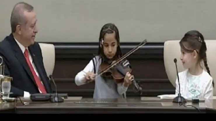 Küçük çocuk "Cumhurbaşkanımız bu şarkıyı şehitlerimiz için çalıyorum" diyerek Çanakkale Türküsü'nü çaldı. Daha sonra "Cumhurbaşkanım bu parça da sizin için " diyerek Uzun İnce Bir Yoldayım'ı çaldı. Ve son olarak "Bunu anneniz için çalıyorum" deyince, Cumhurbaşkanı "Offf şimdi yıktın beni" karşılığını verdi.