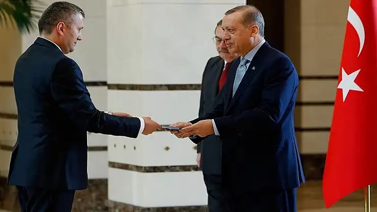 Cumhurbaşkanlığı Külliyesi'nde gerçekleşen kabulde, Şopanda, Cumhurbaşkanı Erdoğan'a güven mektubunu takdim etti.