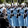 Ruhani, Muhafız Alayı Tören Kıtası'nı, Türkçe, "merhaba asker" diyerek selamladı. Törende, tarihte kurulan 16 Türk devletini temsil eden bayraklar ve askerler de yer aldı.
