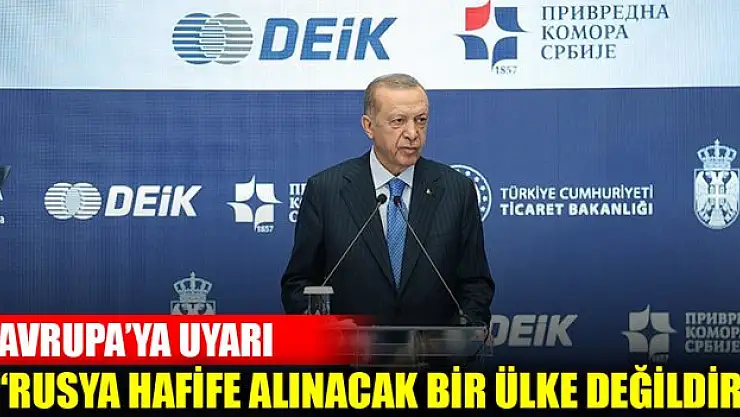 Cumhurbaşkanı Recep Tayyip Erdoğan, Sırbistan Cumhurbaşkanı Aleksandar Vuçiç'le düzenlediği ortak basın toplantısında Avrupa'nın Rusya'ya yönelik politikasının yanlış olduğunu belirterek, Rusya'nın hafife alınacak bir ülke olmadığını söyledi.