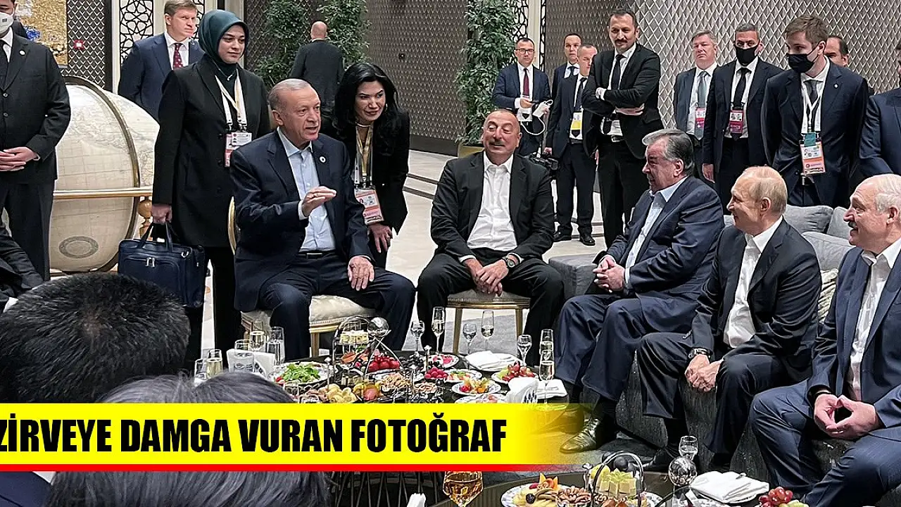 Cumhurbaşkanı Erdoğan`ın, liderlerle sohbet ettiği anlar sosyal medyada çok konuşulanlar arasında. Azerbaycan basını, liderlerin Cumhurbaşkanı Erdoğan`ı dinlediği bu fotoğrafı, "Semerkant`ta günün fotoğrafı: Liderlerin gayri resmi toplantısı..." şeklinde duyurdu.