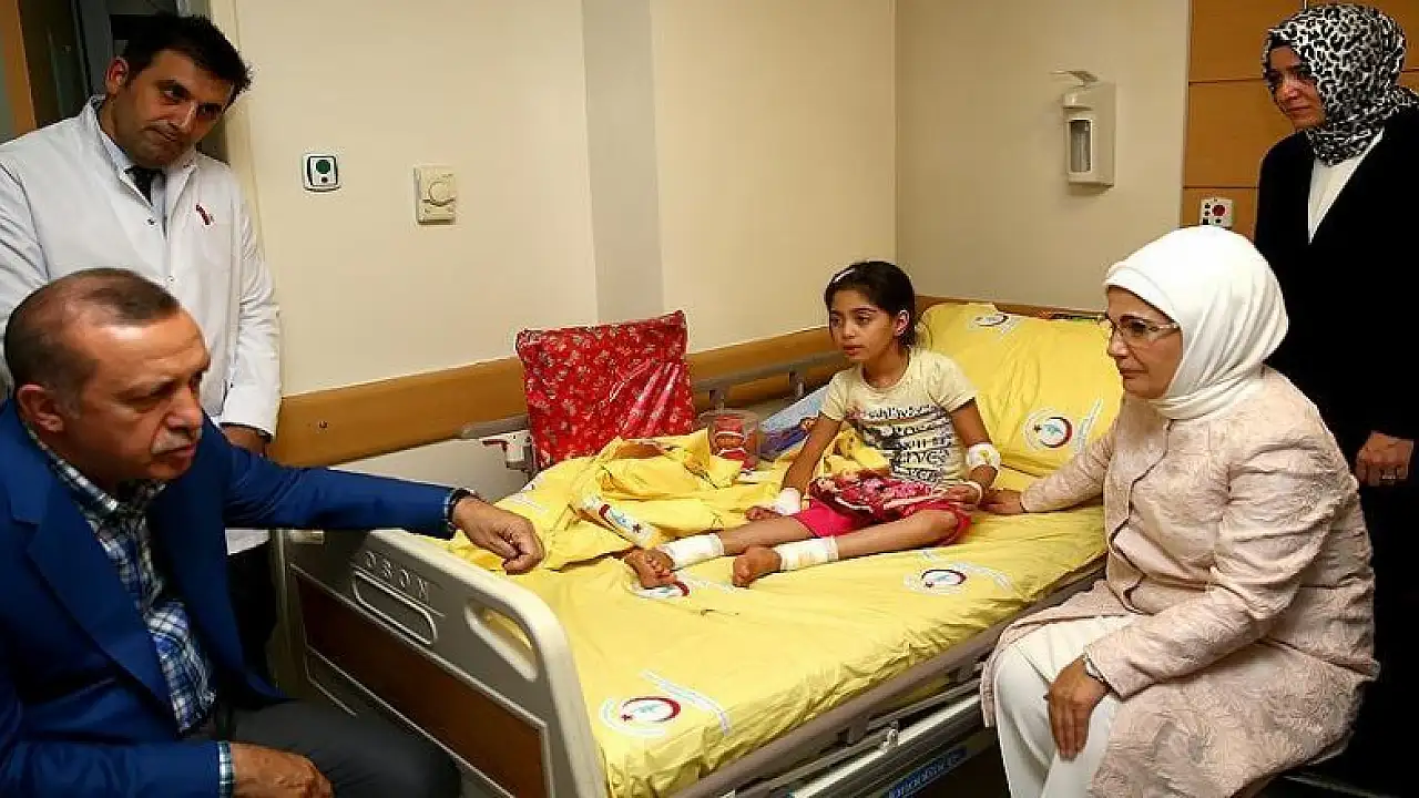 Cumhurbaşkanı Recep Tayyip Erdoğan, Gaziantep'teki terör saldırısında yaralananları tedavi gördükleri hastanede ziyaret etti.