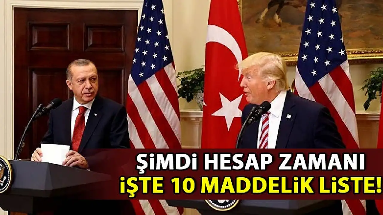 Erdoğan bugün ABD’den ayrılmadan önce Türkiye saati ile 22.00’de ABD Başkanı Trump ile görüşmeye başlayacak. Görüşmede Erdoğan’ın çantasında 10 önemli konu olacak.