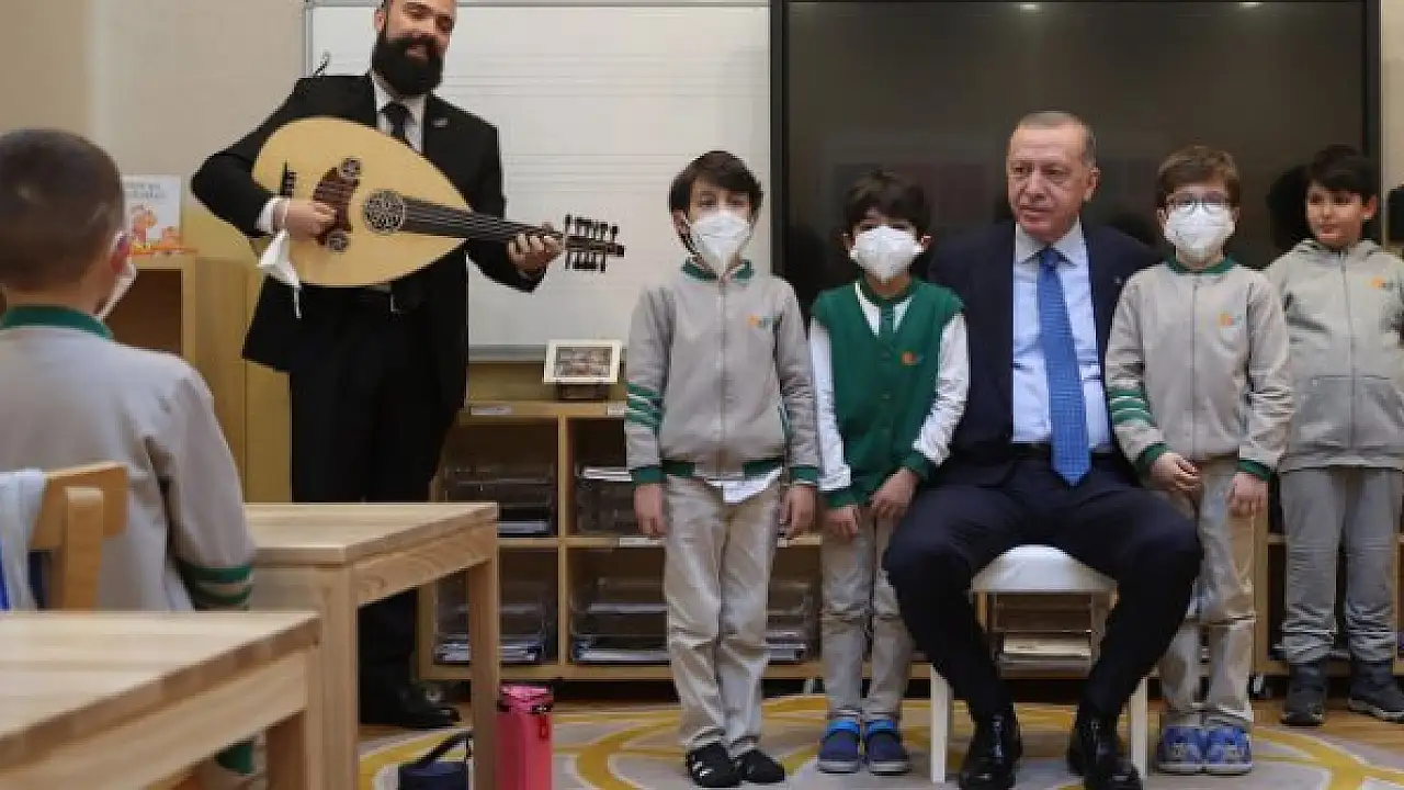 Cumhurbaşkanı Erdoğan, Türkiye'nin ilk Türk müziği ilkokulu olan Palet Türk Müziği İlkokulu'nun açılışını yaptı. Sınıfları da gezen Erdoğan, öğrencilerle ilgilendi, şarkı söyleyen çocuklara eşlik etti.