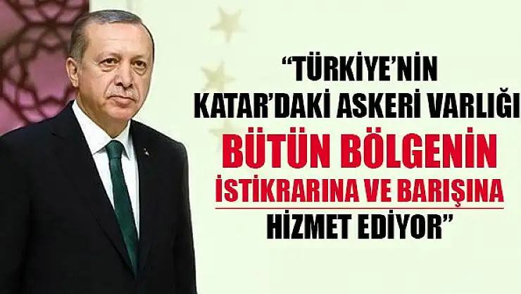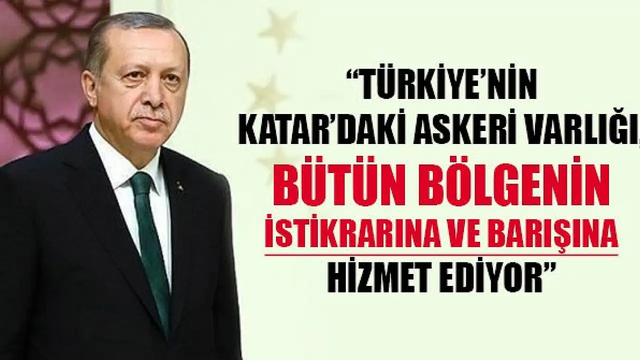Cumhurbaşkanı Erdoğan, "Türkiye askeri varlığıyla sadece Katar'ın değil, bütün Körfez bölgesinin istikrarına ve barışına hizmet etmektedir." dedi.