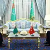 Cumhurbaşkanı Recep Tayyip Erdoğan, Aşkabat'ta Türkmenistan Devlet Başkanı Gurbanguli Berdimuhamedov'la Oğuzhan Sarayı'nda bir araya geldi.