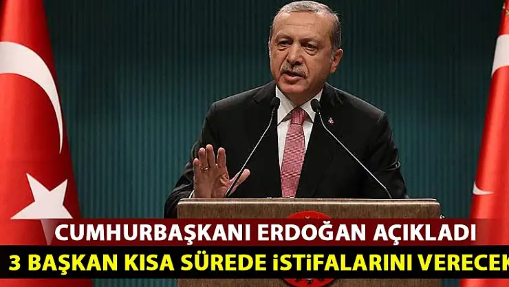 Cumhurbaşkanı Recep Tayyip Erdoğan, Nijerya CumhurbaşkanıMuhammadu Buhari ile yaptığı ortak açıklamada başkanların Belediye başkanlarının istifasının istenmesi ile ilgili soru üzerine Erdoğan, 'Şu an 3 belediye başkanımız istifalarını verdiler, 3 belediye başkanımız daha var. Onlarda en kısa sürede istifalarını verecekler' dedi.