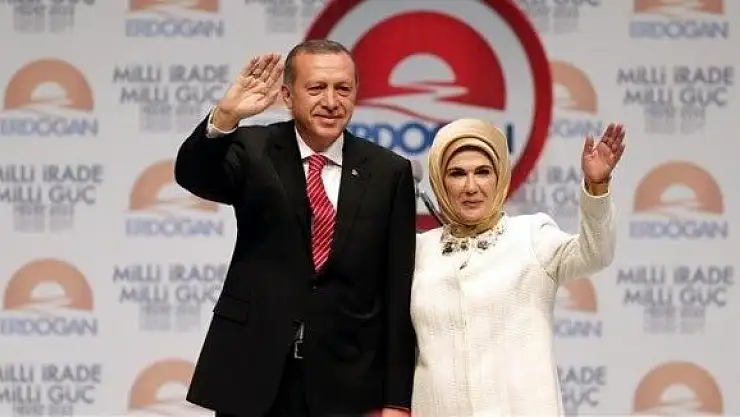 Erdoğan, "Cumhurbaşkanlığı Türkiye Vizyon Belgesi"ni açıklamak üzere Haliç Kongre Merkezi'ndeki salona, eşi Emine Erdoğan ile el ele geldi.