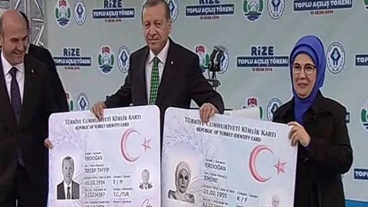 Cumhurbaşkanı Erdoğan, memleketi Rize'de yeni kimlik kartını İçişleri Bakanı Süleyman Soylu'nun elinden aldı.