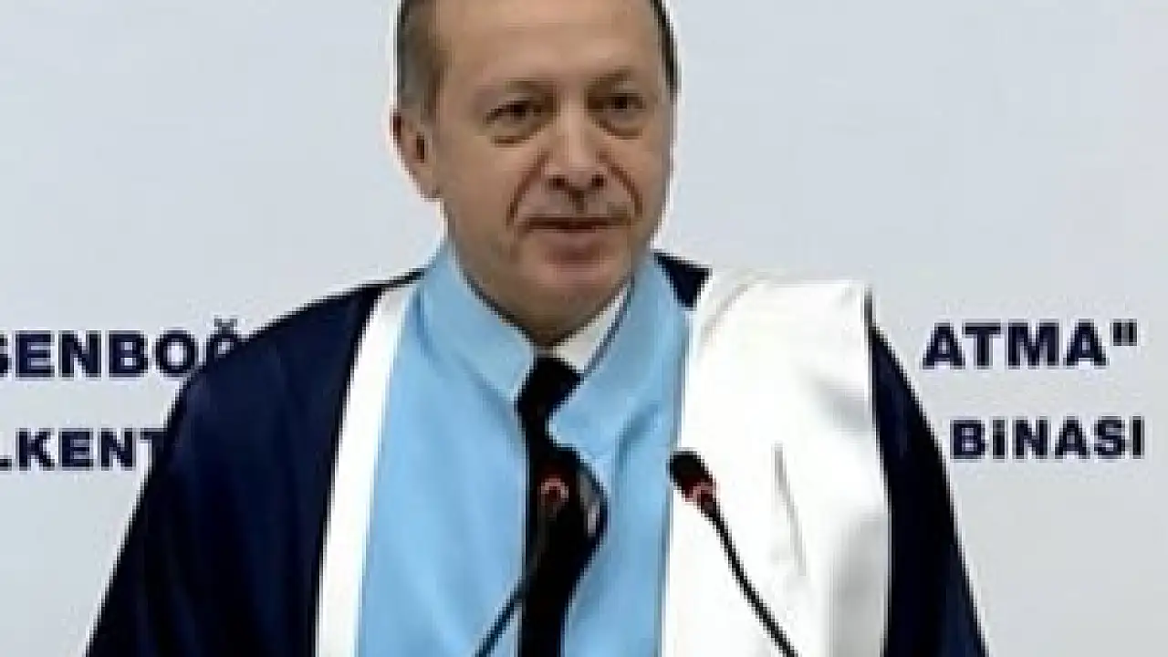 Konuşması sonrası Cumhurbaşkanı Recep Tayyip Erdoğan'a rektör Metin Doğar tarafından Osmanlı Sultanlarından Yıldırım Bayezid'in tuğrası hediye edildi.