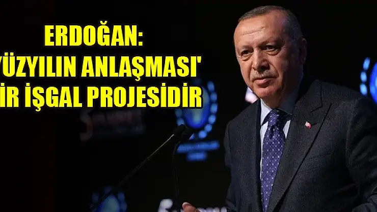 Cumhurbaşkanı Erdoğan, "'100 yüzyılın anlaşması' diyorlar. Ne anlaşması ya! Bu bir işgal projesidir." dedi.