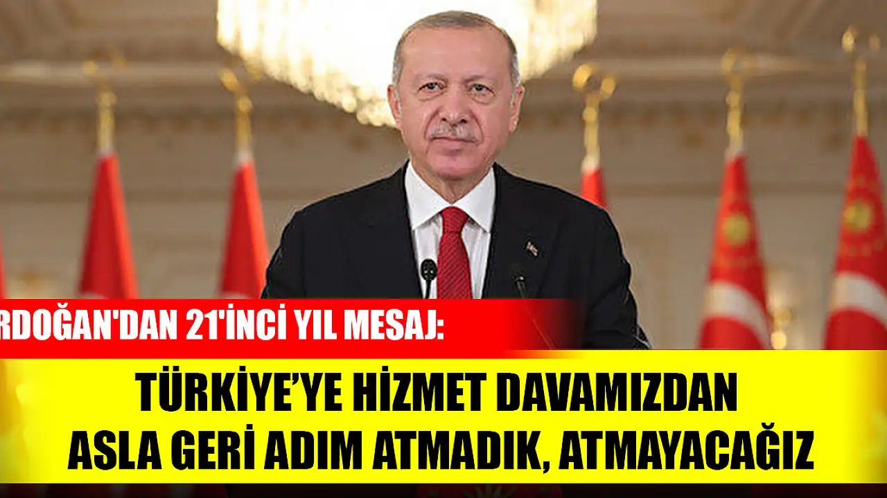 - Erdoğan'dan 21'inci yıl mesaj: Türkiye'ye hizmet davamızdan asla geri adım atmadık, atmayacağız