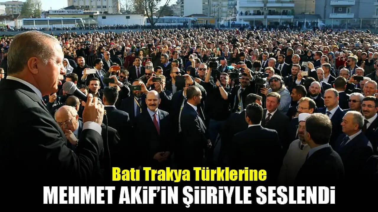 Cumhurbaşkanı Recep Tayyip Erdoğan, Gümülcine'de yaptığı konuşmada Batı Trakyalı gençlere Mehmet Akif Ersoy'un şiiriyle çağrıda bulundu.