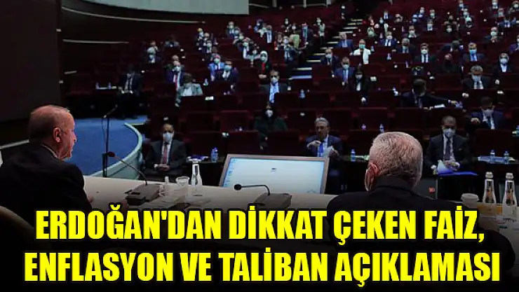 'Enflasyonu, faizi daha önce nasıl düşürdüysek şimdi yine düşüreceğiz' diyen Cumhurbaşkanı Erdoğan, 4 saat süren MKYK toplantısında, Taliban'la görüşmeye açık olduklarını, kapıları kapatmadıklarını söyledi.