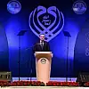 Erdoğan, konuşmasının ardından Diyanet İşleri Başkanı Mehmet Görmez ile birlikte salonda gül dağıttı.