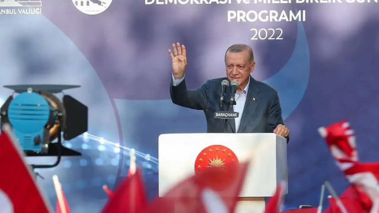 Cumhurbaşkanı Recep Tayyip Erdoğan, Fatih Saraçhane Meydanı'nda düzenlenen 15 Temmuz Demokrasi ve Milli Birlik Günü Anma Programı'na katıldı. Programda konuşan Cumhurbaşkanı Erdoğan: "Küresel ve bölgesel krizlerin olumsuzlukları elbette bizi de etkiliyor. Hayat pahalılığı başta olmak üzere elbette insanlarımızı sıkıntıya düşüren gelişmeler yaşıyoruz. Ama şundan emin olunuz ki, omuzlarımıza binen hiçbir yük kalıcı değildir. Hiçbir sorunumuz çözümsüz değildir. Son zamanlarda Bay Kemal çıkmış üniversiteli gençlerimizin KYK ile ilgili, onların aldıkları burslarla ilgili, onlara faiz yükü bindiriyormuşuz. Faizin en büyük düşmanı biziz. Allah nasip ederse ilk kabine toplantımızda bu konuyla ilgili açıklamayı kabine toplantımızdan sonra yapacağız. Biz gençlerimizin faize kurban etmeyiz. Hatta daha ileri gidiyorum enflasyona da kurban etmeyiz. Biz çalışmamızı yapıyoruz ve kabine toplantımızdan sonra da gerekli açıklamayı yapacağız. Milletimizin sıkıntılarını da, ülkemizin imkanlarını da en iyi biz biliyoruz Bay Kemal. Göreve geldiğimiz zaman öğrencilerin aldığı burs neydi? 45 liracıktı Bay Kemal. Bu harcı kaldıran kimdi biz kaldırdık, şuan da harç diye bir şey kaldı mı? Biz kaldırdık." dedi.