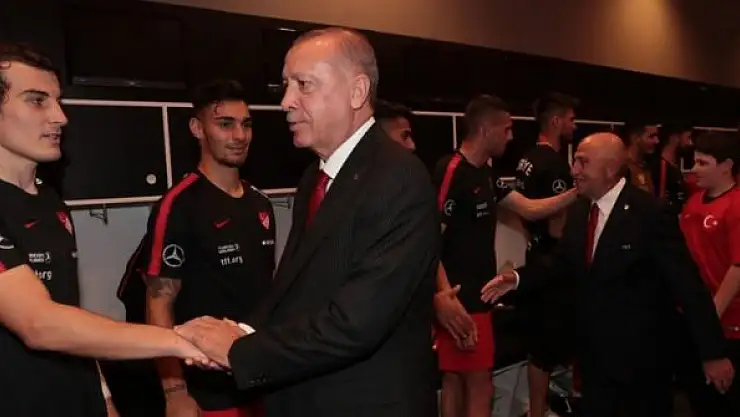 A Milli Takım Teknik Direktörü Şenol Güneş'e ve futbolculara seslenen Erdoğan, "Sonuç ne olursa olsun, sizleri hep çok sevdiğimizi bilin. Her zaman yanınızdayız. Allah yar ve yardımcınız olsun." dedi.