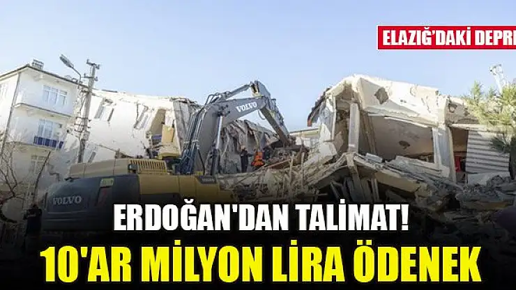 AA muhabirinin İçişleri Bakanlığı Afet ve Acil Durum Yönetimi Başkanlığından (AFAD) aldığı bilgiye göre, Cumhurbaşkanı Erdoğan'ın talimatıyla Elazığ İl Özel İdaresi ile Malatya Valiliği Yatırım İzleme ve Koordinasyon Başkanlığına (YİKOB) 10'ar milyon lira daha ödenek gönderildi.
