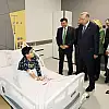 Sol dizindeki iltihaplanma nedeniyle hastanede tedavi gören bir çocuk da Cumhurbaşkanı Erdoğan'ın "ayağın nasıl?" diye sorması üzerine, "Ayağım iyi, iyileşiyorum. Dikişlerim alınacakmış." yanıtını verdi.