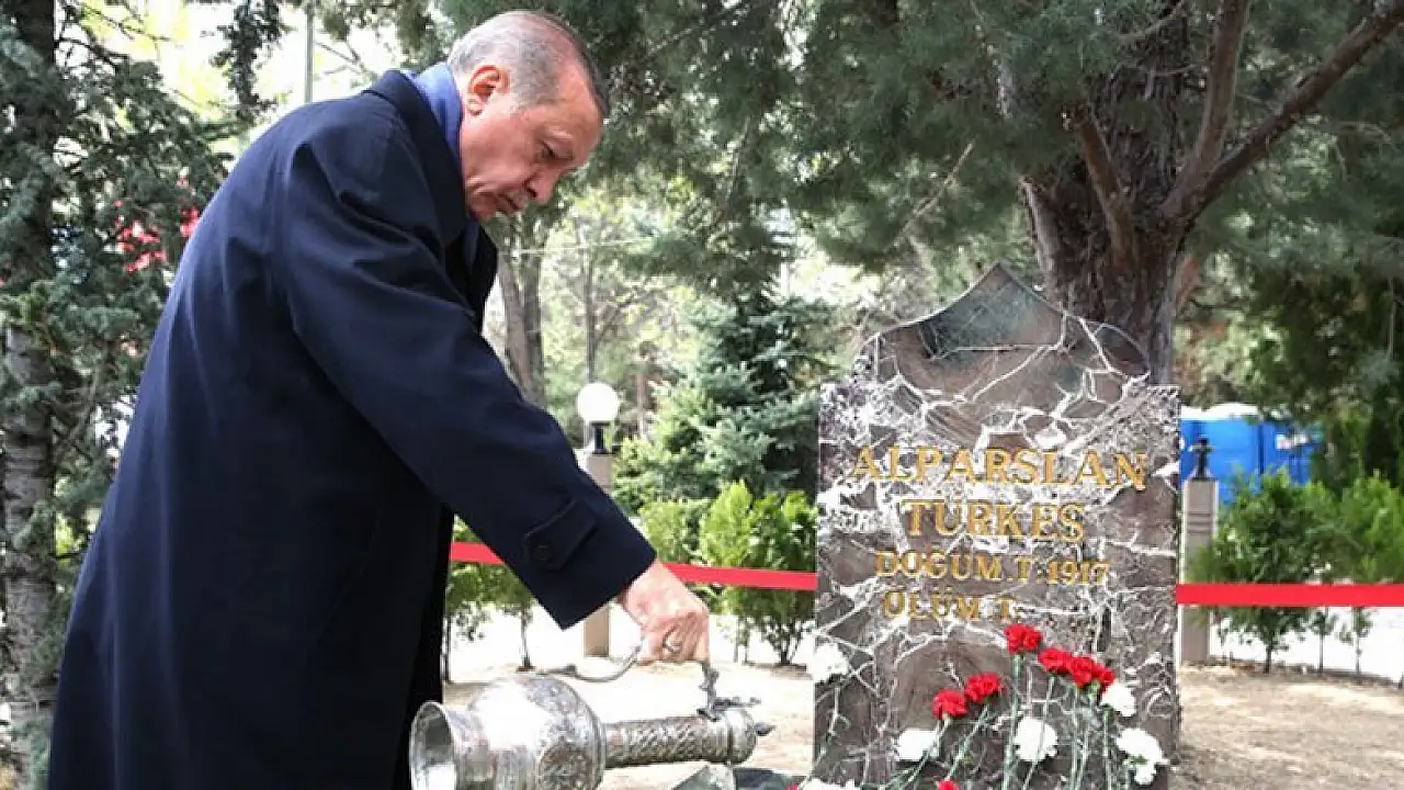 MHP'nin kurucusu Alparslan Türkeş, vefatının 20. yılında Ankara'daki kabri başında anılmıştı. Dün, MHP Genel Başkanı Devlet Bahçeli ve partililer, Türkeş'in mezarı başında bir anma töreni gerçekleştirmişti. Cumhurbaşkanlığı Külliyesindeki muhtarlar toplantısını tamamladıktan sonra Külliyeden ayrılan Cumhurbaşkanı Recep Tayyip Erdoğan, Türkeş'in kabrine sürpriz bir ziyaret yaptı.