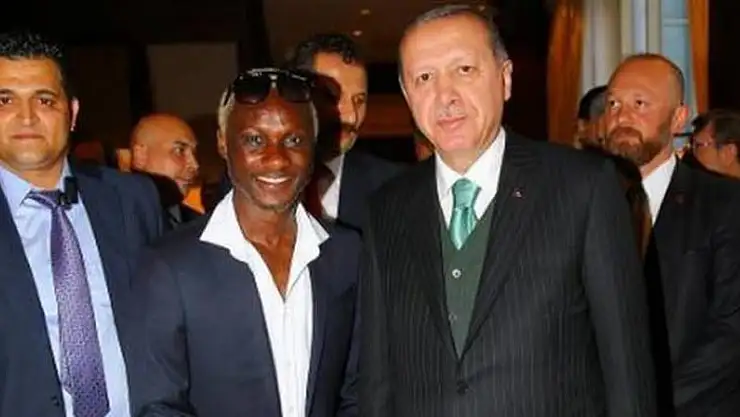 NATO Zirvesi için Brüksel'e giden Erdoğan'ı Havalimanı'nda karşılayan kafile arasında Trabzonsporlu eski futbolcu İbrahim Yattara'da vardı.