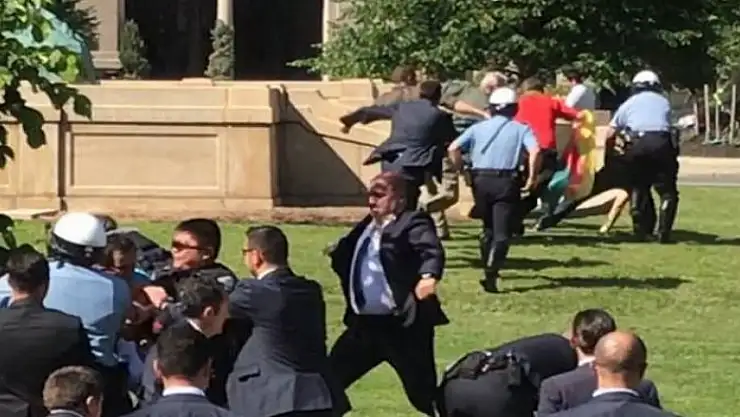 Associated Press'te yer alan habere göre: Cumhurbaşkanı Recep Tayyip Erdoğan'ın 15 korumasının da içerisinde olduğu 19 kişi hakkında, Erdoğan'ın Mayıs ayındaki ABDziyareti sırasında protestoculara şiddet uyguladıkları gerekçesiyle soruşturma başlatıldı.