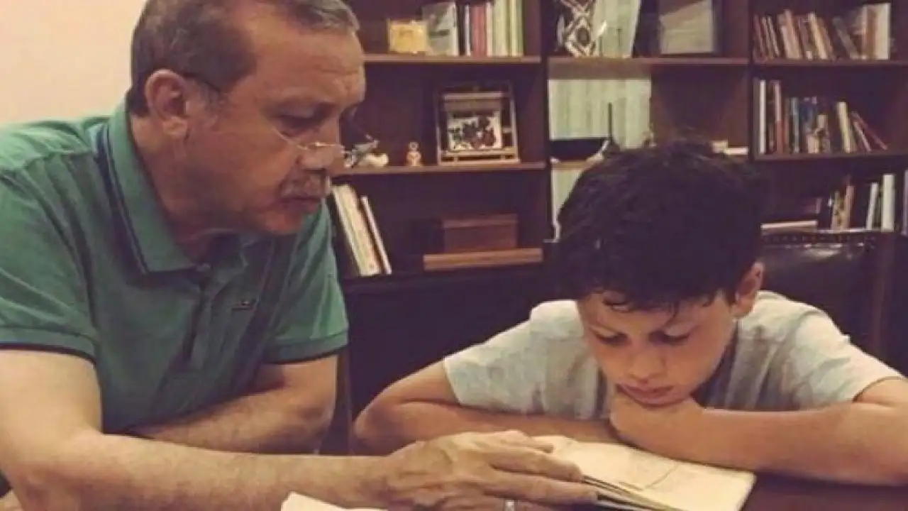 Torunlarıyla vakit geçirmeyi çok seven Cumhurbaşkanı Erdoğan'ın çekilen son fotoğrafında; torununa Kur'an-ı Kerim öğrettiği görülüyor.