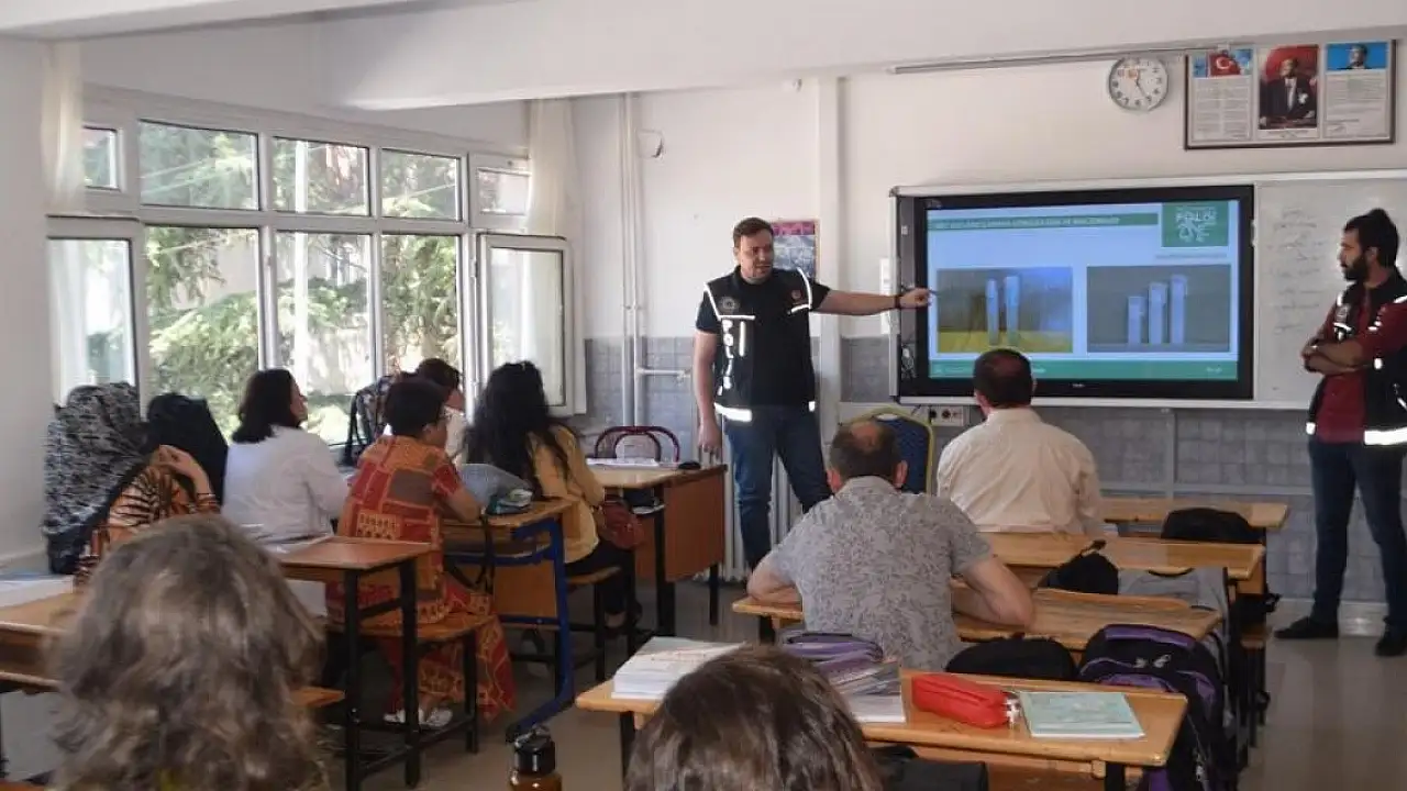 Konya'nın Ereğli ilçesinde narkotik polisleri tarafından narkotik suçlarla mücadelenin önemi, madde kullanımı, bağımlılığı ve etkileri konularında öğretmenlere bilgilendirme yapıldı.