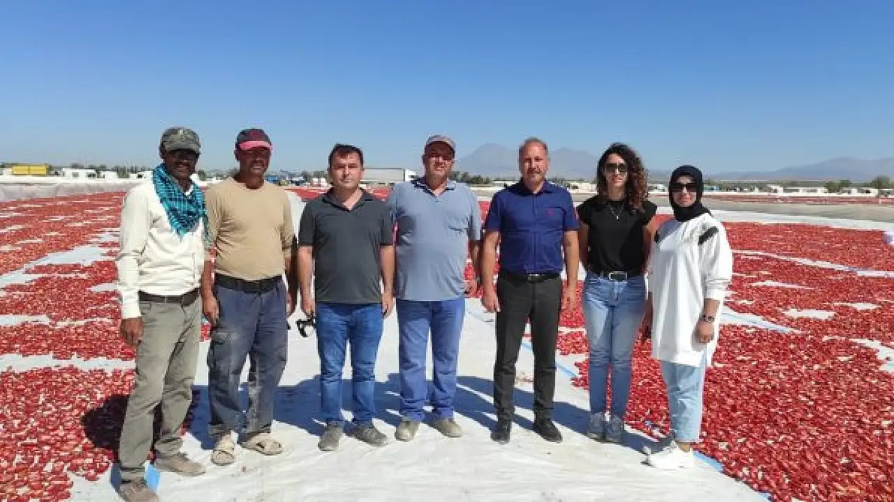 Ereğli ilçesinin bereketli topraklarında üretimi yapılan ve kurutulduktan sonra İtalya ve Rusya'da makarnaya, pizzaya, sofralara sos olan, tat veren domateslerin üretim sahası ziyaret edilerek kontrol ve bilgi alışverişinde bulunuldu. Konya İl Tarım ve Orman Müdürlüğü yetkilileri tarafından yapılan açıklamada, “Ereğli ilçemizde yaklaşık 50 bin dekar alanda üretimi yapılan domateslerin büyük çoğunluğu halk arasında bursa domatesi olarak bilinen salçalık ve kurutmalık domates çeşidinden oluşmaktadır. İlçemiz genelinde 50 bin dekarlık alanda yapılan ekim sonucunda, ortalama 400 bin ton domates elde edilmektedir. Toplanan domateslerin bir kısmı ise toplamda bin dekar alana serilen örtüler üzerinde kurutulup kuru domates olarak İtalya ve Rusya başta olmak üzere yurt dışına ihraç ediliyor. Güneşin altında her gün sabah 6'dan akşam 6'ya kadar özveriyle çalışan mevsimlik işçilerin ikiye bölüp tuzladığı domatesler kurumak üzere beyaz örtülerin serildiği arazilere bırakılıyor ve yaklaşık bir hafta güneşte kurutuluyor. Ortalama 13 kg domatesten 1 kg kurutulmuş domates elde edilmektedir. Ülkemiz yıllık olarak yaklaşık 20 bin tona yakın kuru domates ihracatı ile dünya ülkeleri arasında 1. sırada yer almaktadır” denildi.