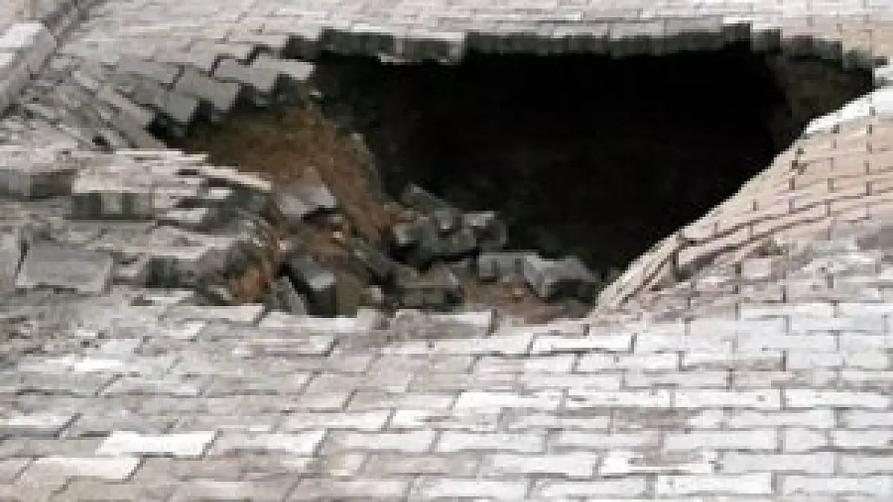 Konya'nın Ereğli ilçesinde su borusunun patlaması sonucu yolda göçme meydana geldi.