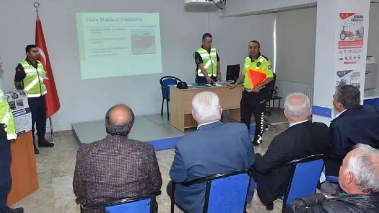 Konya'nın Ereğli ilçesinde jandarma trafik ve trafik polisleri tarafından, tarım araçlarının güvenli kullanımı konusunda traktör sürücülerine eğitim verildi.
