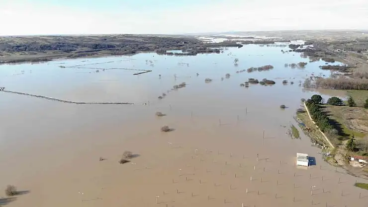 Ergene Nehri'nin debisinin 20 kat artmasıyla Kırklareli'nin Pehlivanköy ilçesindeki panayır alanı ve tarım alanları sular altında kaldı.