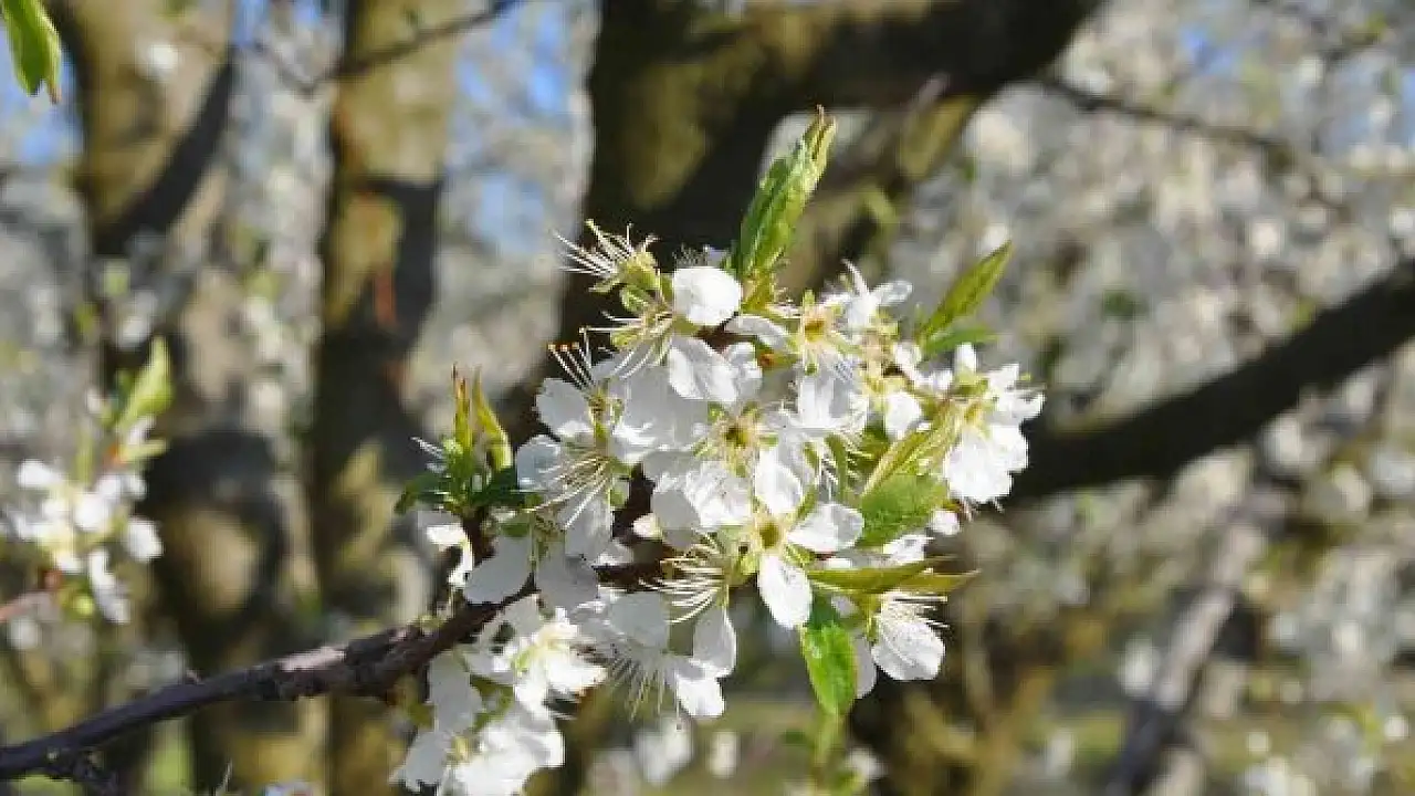 Erik bahçesinin sahibi Ramazan Çalışkan, "Ağaçların çiçek açma zamanı, hepsi gelinliklerini giydiler bakmaya doyum olmuyor. Yukarı bakarsak çiçek, yere baksak yeşil. Doğanın en güzel zamanı" şeklinde konuştu.