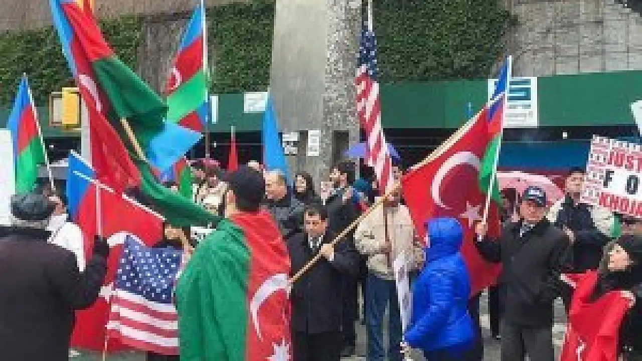 New York'taki Birleşmiş Milletler merkezi önünde düzenlenen protesto gösterisine yüzlerce Türk ve Azerbaycanlı katıldı. New York polisinin yoğun güvenlik önlemleri aldığı gösteride, bir grup Ermeni'nin engelleme girişimi güvenlik güçlerinin müdahalesiyle sonuçsuz kaldı.