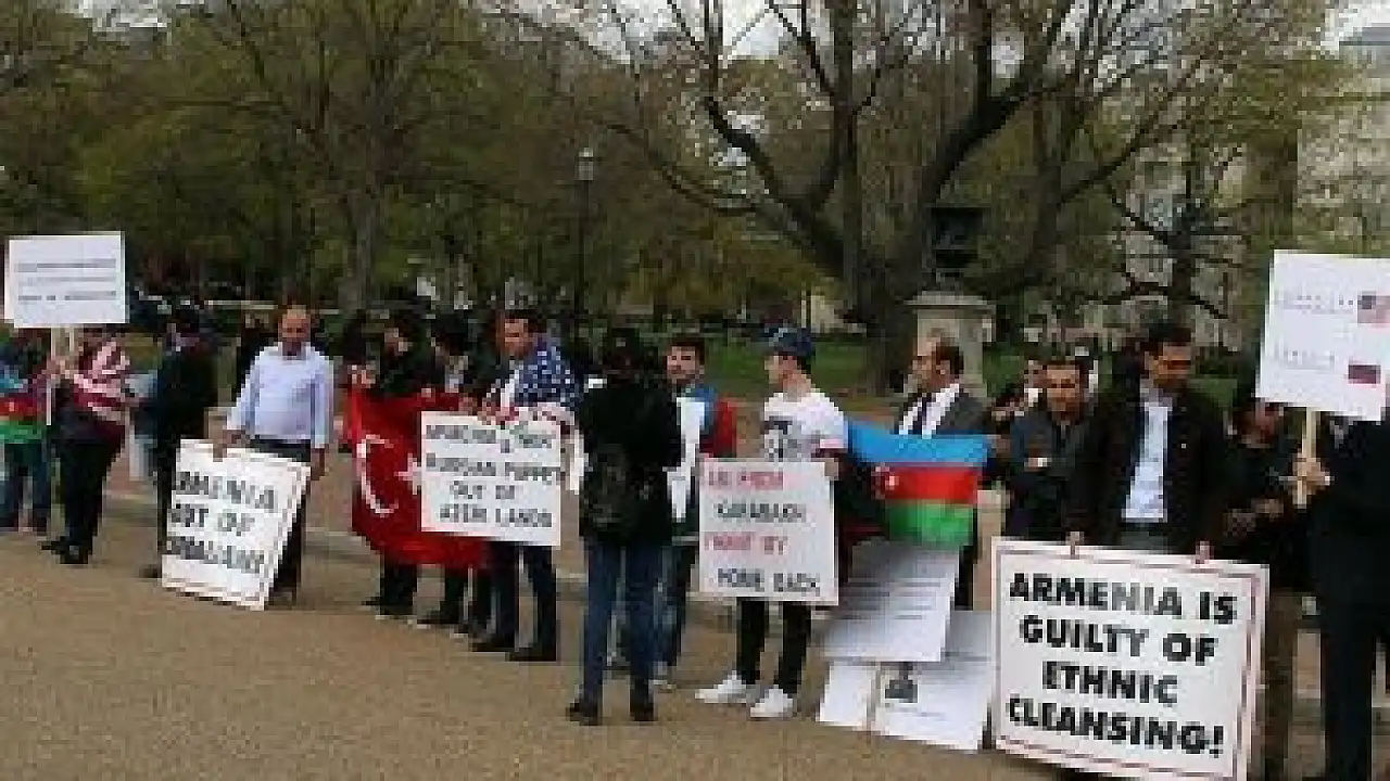 Azebaycan Türklerinden oluşan yaklaşık 30 kişilik grup, öğlen saatlerinde Beyaz Saray’ın karşısındaki Lafayet'te parkında toplandı. Gruba bazı Amerikalılar da destek verdi.