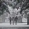 Üzümlü ilçesinde ise karla kaplı park ve bahçelerde güzel manzaralar oluştu.