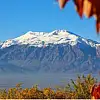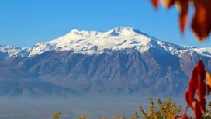 İlçe merkezinden rahatlıkla görülebilen Keşiş Dağı'nın karlı zirvesi, güzel görüntüler ortaya çıkardı.