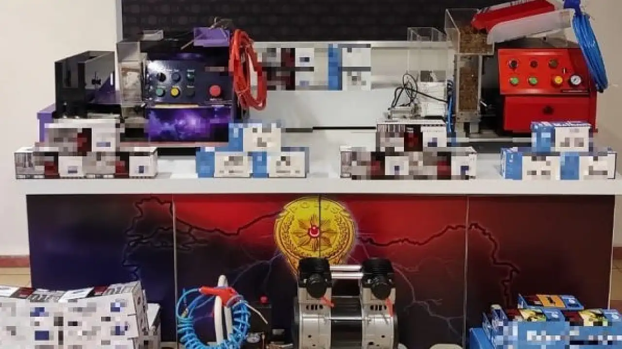 Erzincan İl Emniyet Müdürlüğü Kaçakçılık ve Organize Suçlarla Mücadele Şube Müdürlüğü görevlilerince kent genelinde kaçakçılık suçlarının önlenmesine yönelik yapılan çalışmalar kapsamında; müstakil ve müştemilatında yapılan aramada; 600 adet içi doldurulmuş makaron, 8 bin adet boş makaron, 2 adet tam otomatik sigara sarma makinası, 1 adet hava kompresörü ve 6,250 gram kıyılmış tütün ele geçirildi.