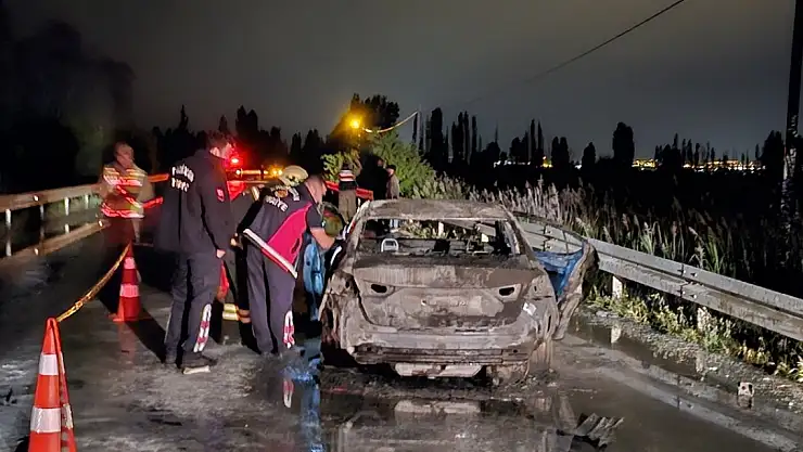 Erzincan'da bariyerlere çarptıktan sonra alev alarak yanan otomobildeki 1 kişi öldü, 1 kişi yaralandı.