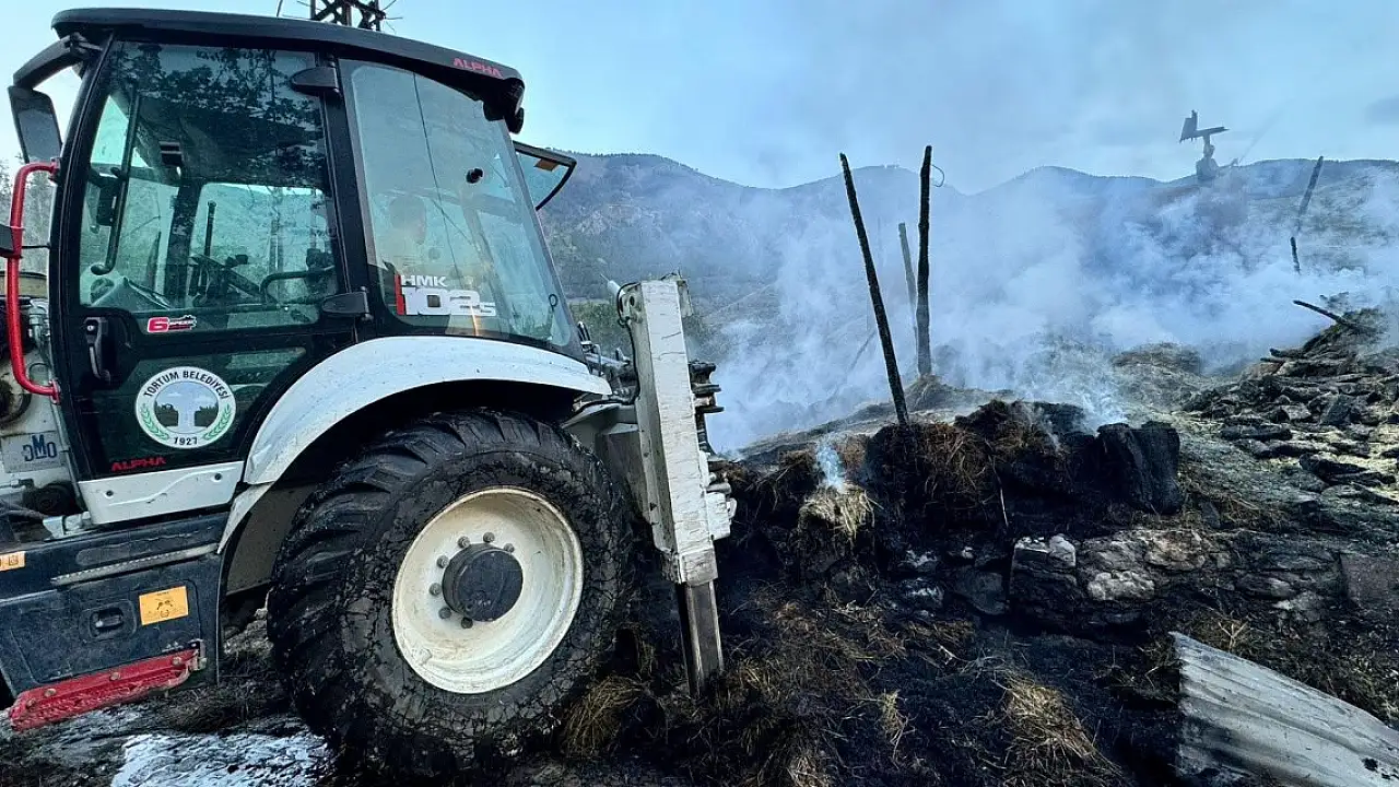 Erzurum'un Tortum ilçesinde çıkan yangında 2 ev, 1 ahır ve 1 samanlık kül oldu.