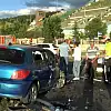 Kaza nedeniyle yol kısa süreli olarak trafiğe kapandı.